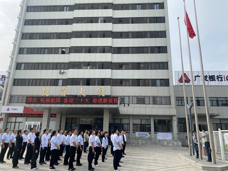 同升國旗、同唱國歌。9月30日上午,市礦投集團聯(lián)合市文旅集團、市揚子工投集團、市擔保集團在投資大廈舉行升旗儀式,全體人員同唱國歌,抒發(fā)愛國情懷,表達對祖國的美好祝福。