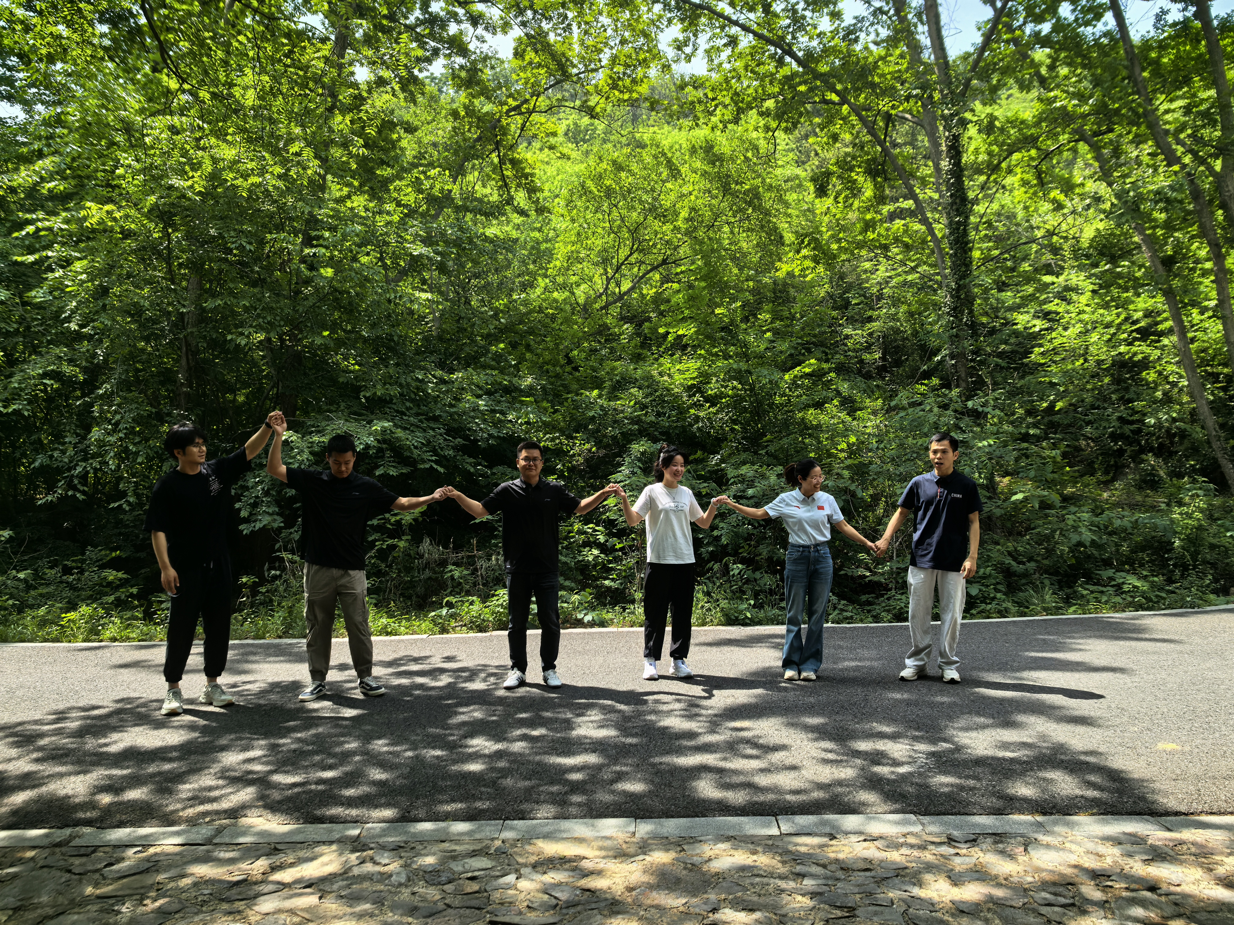 一穿到底。各組隊員手拉手站成一排,在最短的時間內相繼穿過隊友用手臂搭成的“橋梁”,充分考驗團隊的協(xié)作能力和默契。